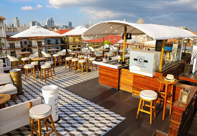 CasaCasco is a one-of-a-kind experience in Panama City’s historic Casco Viejo — a vertical playground rising five floors above Plaza Herrera. On the lower levels you’ll discover a trio of restaurants offering a mix of cuisines: Asian-fusion, global grill, sushi and Latin-Caribbean influenced plates that shine with fresh ingredients and creative execution. As you ascend, the energy shifts: by the fourth floor the vibe becomes electric, with a Club-Disco pulsing to DJs and nightlife beats. But the showpiece is the rooftop — a 360° terrace that crowns CasaCasco. With panoramic views over colonial rooftops, the modern skyline, the sea, and even distant Taboga Island, this is where golden-hour turns into night full of cocktails, music, and sociable energy. Think comfy lounge seating in white-toned décor, high-top tables, ambient lighting after sunset, and a cosmopolitan crowd sipping signature drinks while watching the city lights come alive. Whether you arrive for a stylish lunch, a sunset dinner, or late-night drinks and dancing — CasaCasco adapts. The rooftop serves small bites from the restaurants below, perfect for pairing with a champagne flute or a craft cocktail. On weekends, the vibe is elevated with DJs, glam outfits, and a smart-casual dress code. The atmosphere blends elegance and urban vibrancy, and there’s a sense of both exclusivity and carefree fun: it’s a great spot for a romantic evening, group outing, or a night out with friends. Because of its variety — from gourmet meals to rooftop cocktails, and from chill lounge to dance floor — CasaCasco appeals to both food lovers and nightlife seekers, locals and travelers alike.
